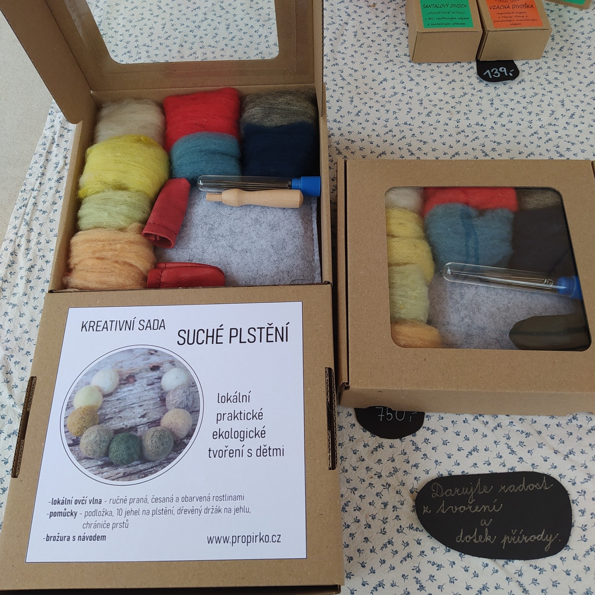 V případě zájmu lze zkompletovat sadu z většího množství materiálu i pomůcek, například pro všechny členy rodiny, děti ve školce, škole, na táboře a pod. Můžete si také vybrat barvu vlny a druh mýdla. Využijte formuláře "Poptávka kreativní sady na přání" a napište mi, co byste ve své sadě potřebovali mít. Vaše přání spolu doladíme po mailu a sestavím sadu Vám na míru.