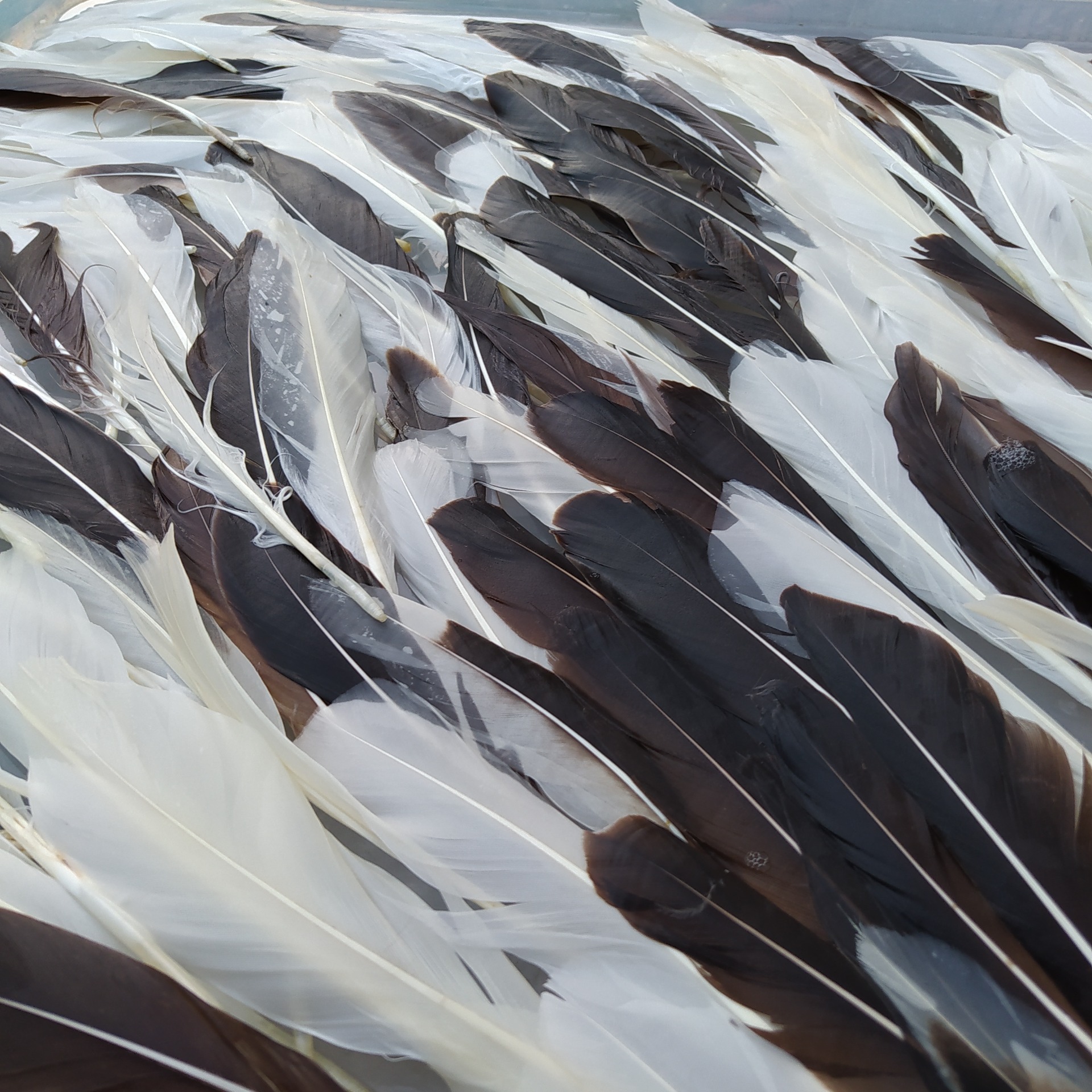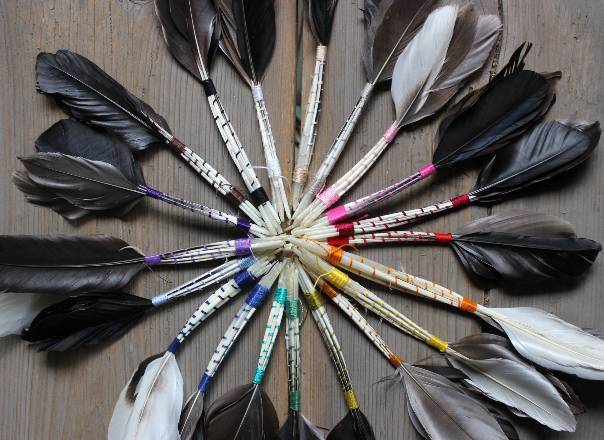 Husí pera jsou svázána tradičním způsobem barevnou bavlnkou. Barvu si lze vybrat. Konce per nejsou zastřižené, ale jsou ponechány přirozeně zaoblené konce. Mně toto řešení přijde přirozenější a estetičtější, ale hlavně konce per během používání neškrábou do dlaně.
